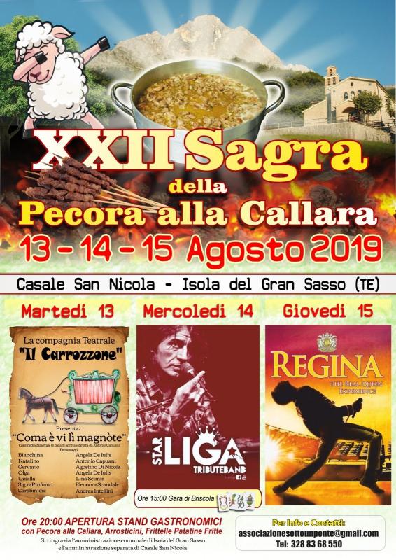 La sagra della pecora alla callara si svolge a Casale San Nicola frazione del Comune Isola del Gran Sasso dal 13 al 15 agosto 2019