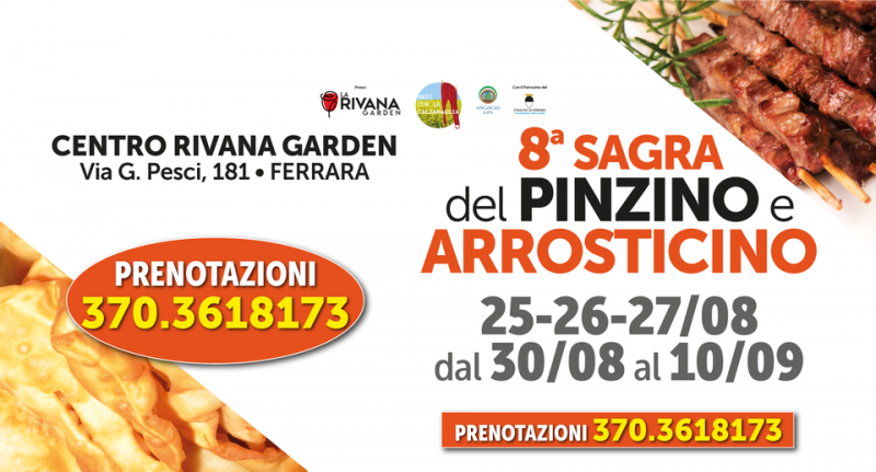 Prende il via l’ottava edizione della "Sagra del pinzino e dell'arrosticino" che si terrà, come ogni anno, a Ferrara presso il Centro Rivana Garden in via G. Pesci 181 a cura dell'Associazione "Nati con la calzamaglia", in stretta collaborazione - appunto - con il Rivana. La kermesse partirà nei giorni di venerdì 25, sabato 26 e domenica 27 agosto, poi proseguirà da mercoledì 30 agosto a domenica 10 settembre (tutti i giorni) per un totale di 15 giorni di delizie gastronomiche attraverso i quali l'associazione riesce ogni anno a realizzare un importante contributo di solidarietà.