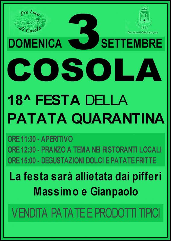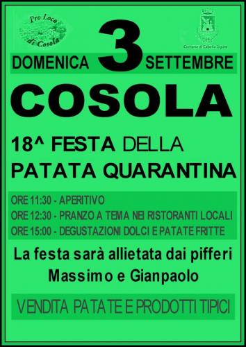 Domenica 02 Settembre a Cosola 19^ Festa della Patata Quarantina