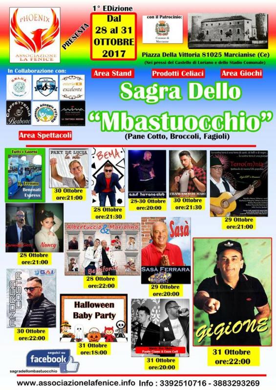 Dal 28 al 31 Ottobre 2017 si terrà in Piazza della Vittoria di Marcianise la prima edizione della Sagra dello Mbastuocchio