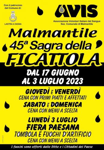 La 45^ Sagra della Ficattola , frazione collinare del Comune di Lastra a Signa, si svolge dal 17-18 -23-25-30 giugno e 2-3 luglio 2023.