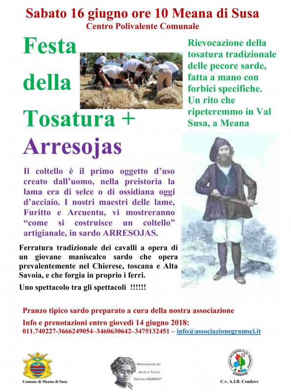Sabato 16 giugno a Meana di Susa dalle ore 10:00 presso il centro polivalente comunale, ci sarà la seconda edizione della Festa della Tosatura, rievocazione della tosatura tradizionale delle pecore sarde fatta a mano con forbici specifiche.