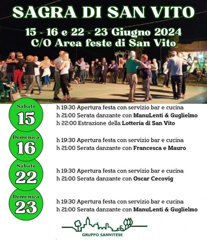Il 15 - 16 e 22 - 23 -Giugno 2024 si svolge la Sagra a San Vito di Gaggiano.