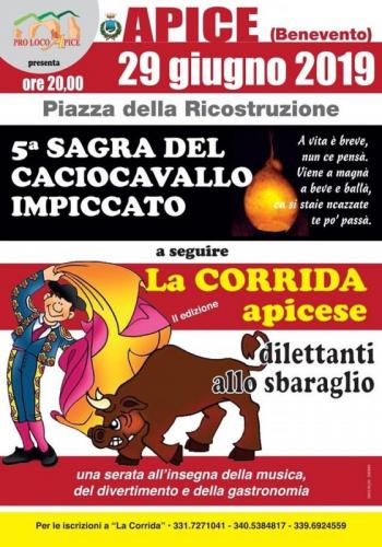 Dalle ore 20:00 in Piazza della Ricostruzione, la locale Pro Loco organizza una manifestazione gastronomica, allietata da musica dal vivo. Sarà possibile degustare oltre al caciocavallo, panini con salsiccia, formaggi con il miele e altre specialità. Seguirà la "Corrida apicese".