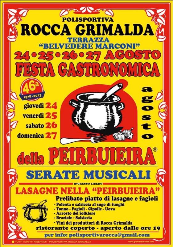 Sono molto gelosi a Rocca Grimalda della ricetta assolutamente segreta della Peirbuieira, piatto di tradizione contadina a base di diverse qualità di fagioli con le lasagne, la cui ricetta è gelosamente custodita dalle donne rocchesi