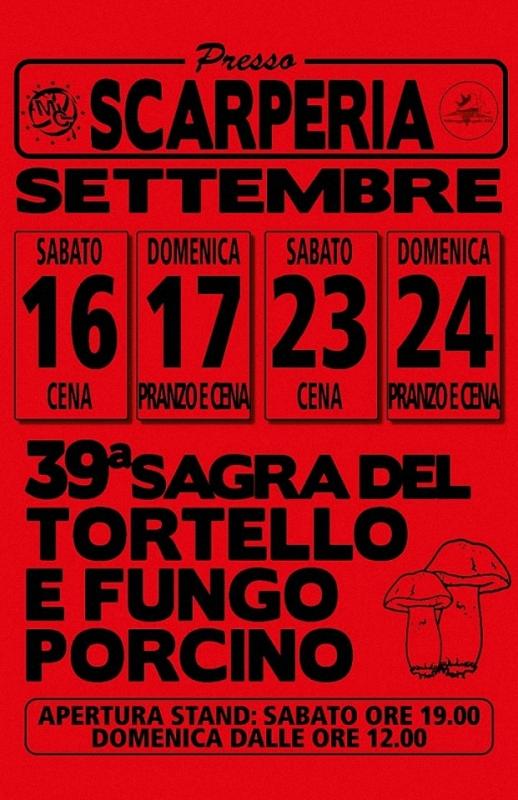 A Scarperia in provincia di Firenze si svolge nei giorni 16/17 e 23/24 Settembre 2023 la 39a edizione della Sagra del Fungo Porcino e del Tortello.