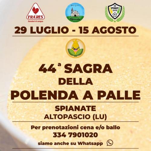 La 44ma edizione della Sagra della Polenda a Palle si svolge dal 29 Luglio al 15 agosto 2023 a Spianate, comune di Altopascio.