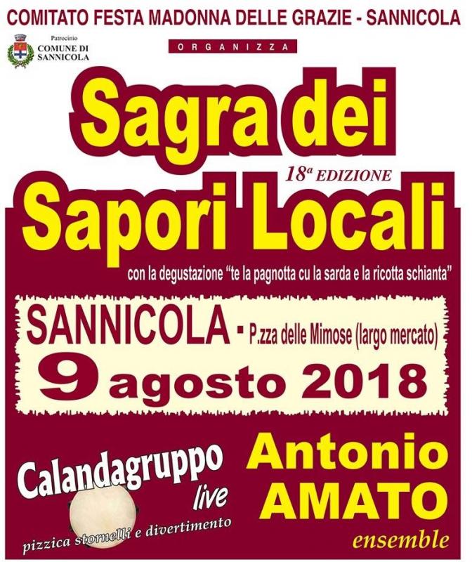 Festa, musica e tanti piatti tipici che hanno come protagoniste assolute le eccellenze enogastronomiche del territorio: giovedì 9 agosto torna anche quest’anno la “Sagra dei Sapori Locali”, giunta alla 18° edizione, organizzata dal Comitato Festa Madonna delle Grazie con il patrocinio del Comune di Sannicola.