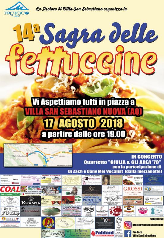 Venerdi 17 Agosto 2018 alle ore 19:00 la Pro Loco di Villa San Sebastiano organizza la 14^ edizione della Sagra delle Fettuccine.