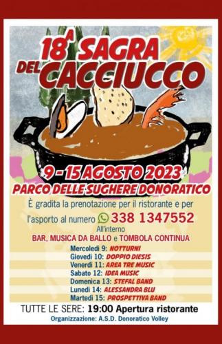 La Sagra del Cacciucco a Donoratico di Castagneto Carducci in provincia di Livorno si svolge dal 09 al 15 Agosto 2023 e siamo alla 18a edizione .