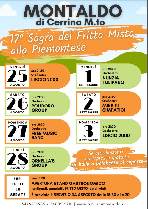 Quest’anno la SAGRA DEL FRITTO MISTO ALLA PIEMONTESE a Montaldo di Cerrina Monferrato (AL) farà il BIS: non uno, bensì DUE WEEKEND CONSECUTIVI!