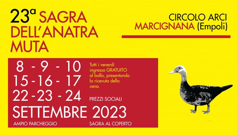 La Sagra dell'Anatra Muta si svolge a Marcignana di Empoli nei giorni 8-9 9-10 - 15-16-17 -22-23 - 24 Settembre 2023