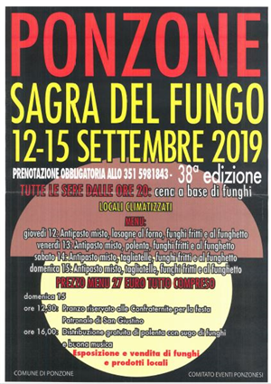 La Sagra del Fungo a Ponzone si svolge dal 12 al 15 settembre 2019.