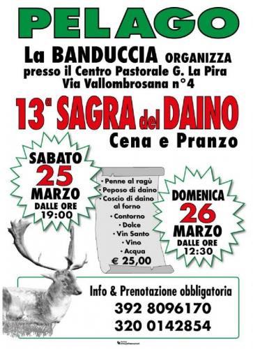 Sabato 25 e Domenica 26 marzo 2023 a Pelago (FI) si terrà la 13ª edizione della Sagra del Daino.