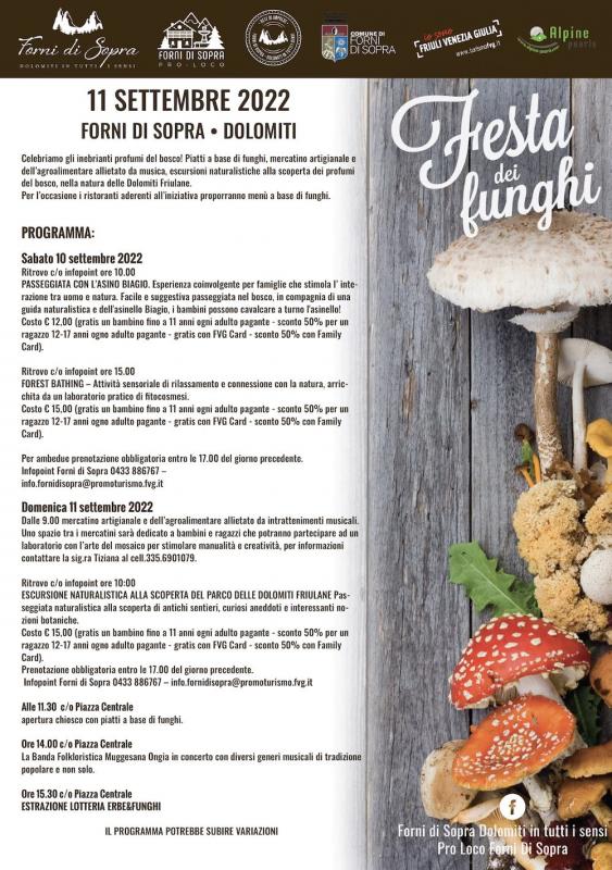 La festa dei funghi a forni di sopra si terrà sabato 10 e domenica 11 settembre 2022