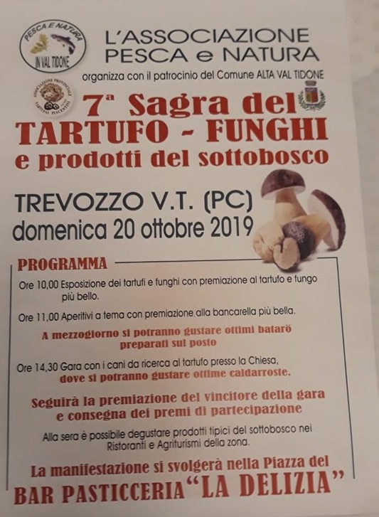 Domenica 20 Ottobre 2019 in piazza a Trevozzo si tiene la 7a edizione della Sagra del Tartufo dei Funghi e dei Prodotti del sottobosco.