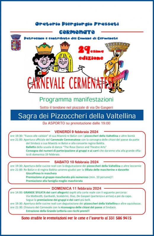 Questo evento gastronomico si svolge anche Domenica 11 Febbraio quando si farà festa con il Carnevale Cermenatese che ogni anno porta allegria sfrenanta nella città comasca.