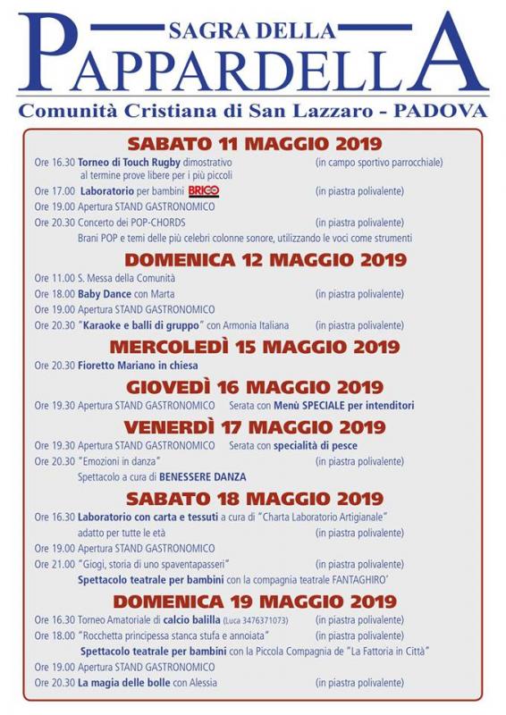 La Sagra della Pappardella a San Lazzaro di Padova si svolge nei giorni 11-12-16-17-18-19 Maggio 2019