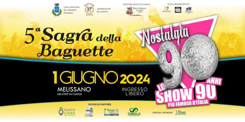 La storia. Partita come "Sagra della Baguette" e divenuto oggi il "Baguette Music Festival, l'evento Melissanese rientra tra le manifestazioni di spettacolo più seguite e frequentate dagli appassionati di feste popolari del Salento. Il Baguette Music Festival, infatti è riconosciuto dagli addetti ai lavori come una gustosa ed imperdibile esperienza gastronomica, che per l'edizione 2025 cresce e certifica il successo del suo programma, sviluppato dal comitato organizzatore. Un successo di pubblico e critica, divenuto dati e presenze alla mano, un'ormai storico ed atteso punto di riferimento per tutti i buongustai del cibo con alimenti di primissima qualità. Oltre agli stand con le famose baguette quest'anno ci saranno anche altre tipologie di food, tutte da scoprire.