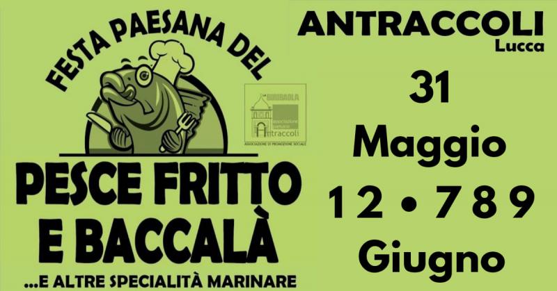 Il paese di Antraccoli, a pochi chilometri da Lucca, famoso per la sua sagra del pioppino con la polenta si cimenta, per la versione estiva, con il pesce. Fritto misto e Baccalà al forno sono i piatti più richiesti ma nel menù ci sono anche una gustosa zuppa di polpetti, l'impepata di cozze, gli spaghetti allo scoglio e le classiche specialità alla brace.
