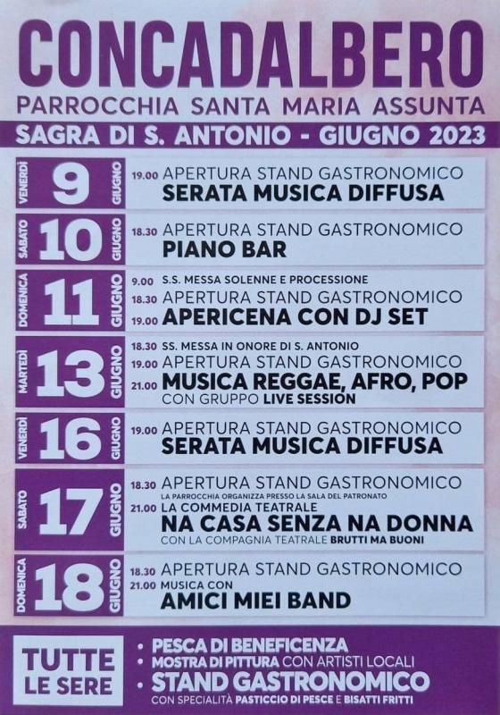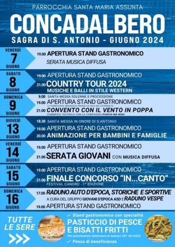 la Sagra di Sant'Antonio a Concadalbero, frazione del Comune di Correzzola in provincia di Padova si svolge nei giorni 7, 8, 9 -13 - 14, 15, 16 Giugno 2