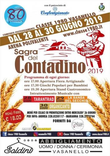 Si terrà il prossimo week end del 28, 29 e 30 giugno l’inedita “Sagra del Contadino”, organizzata dalla classe 1980 di Vasanello, presso l’arena polivalente.
