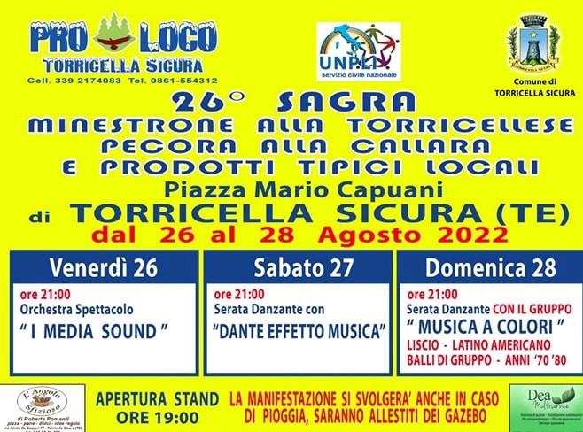 A Torricella Sicura in provincia di Teramo si svolge nei giorni 26-27-28 agosto 2022 la 26a edizione della Sagra del Minestrone alla Torricellese.