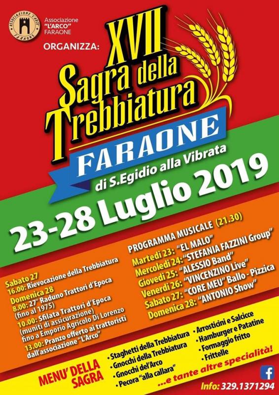 La Sagra della Trebbiatura a Faraone di S.Egidio alla Vibrata si svolge dal 23 al 28 luglio 2019 .