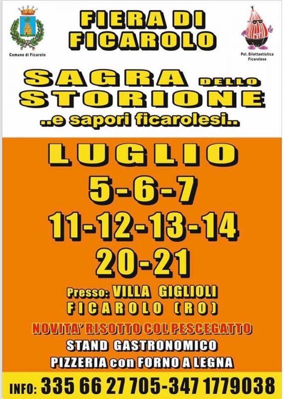 La Sagra dello Storione a Ficarolo (RO() si svolgera nei seguenti giorni 5-6-7 11-12-13-14 20-21 luglio 2019.