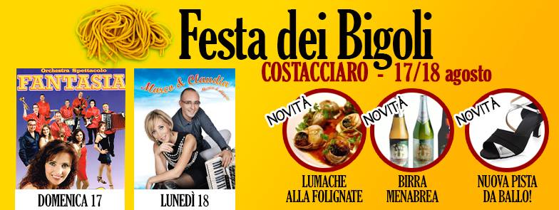 Come tutti gli anni ritorna l'appuntamento a Costacciaro (PG) il 17 e 18 Agosto con la Festa dei Bigoli, la tipica pasta fatta a mano con farina e acqua condita con pomodoro e ricotta.