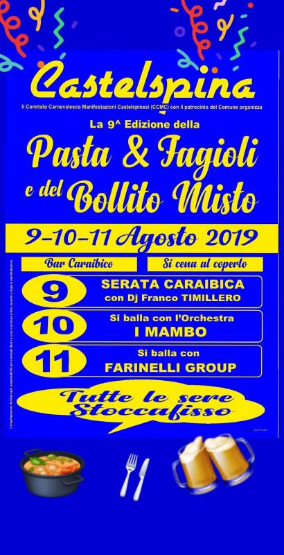 Il Comitato Carnevalesco Manifestazioni Castelspinesi anche quest'anno vi aspetta il 09-10-11 Agosto alla 9ª Edizione della SAGRA della PASTA e FAGIOLI e del BOLLITO MISTO.
