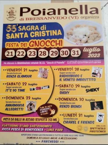 la Festa dei Gnocchi e la Sagra di Santa Cristina a Poianella, frazione del Comune di Bressanvido, in provincia di Vicenza si svolge nei giorni 21,22,23,28, 29, 30,31 Luglio 2023