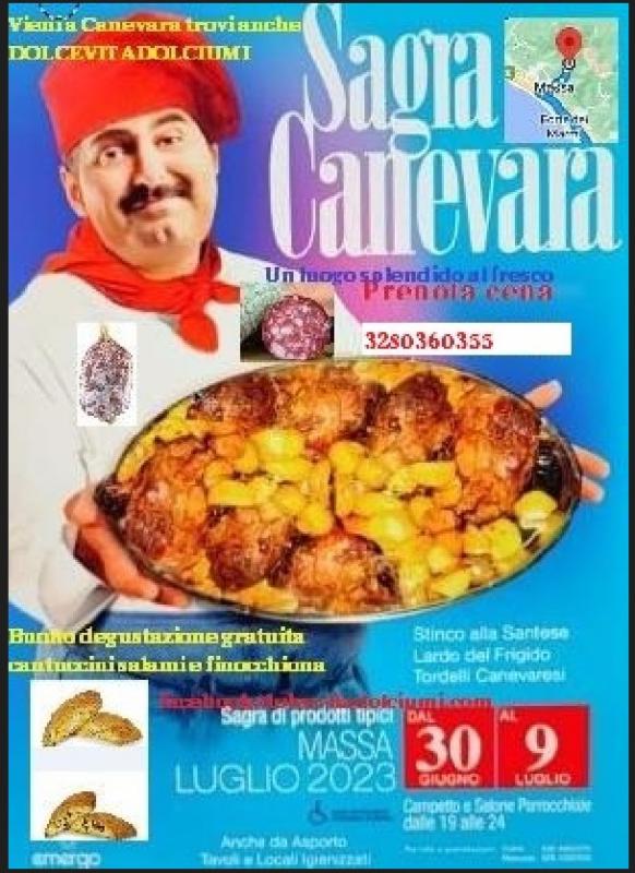 A Canevara, frazione del Comune di Massa in provincia di Massa-Carrara si svolge nei giorni dal 20 Giugno al 9 Luglio 2023 la Sagra di Canevara.