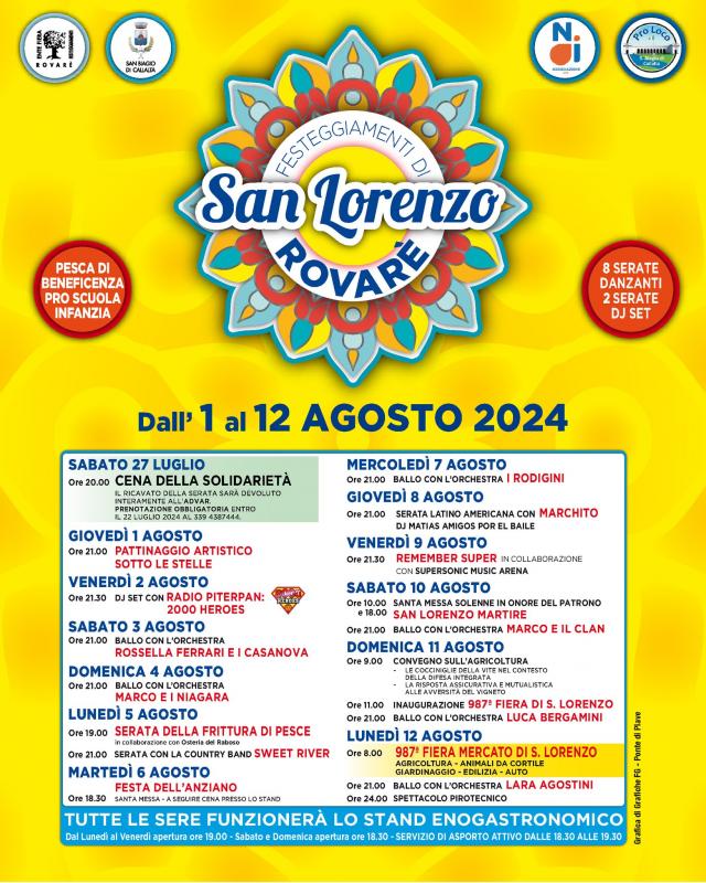 La Sagra di san Lorenzo a Rovare frazione del comune di San Biago di Callalta (TV) si svolge dal 1 al 12 Agosto 2024.
