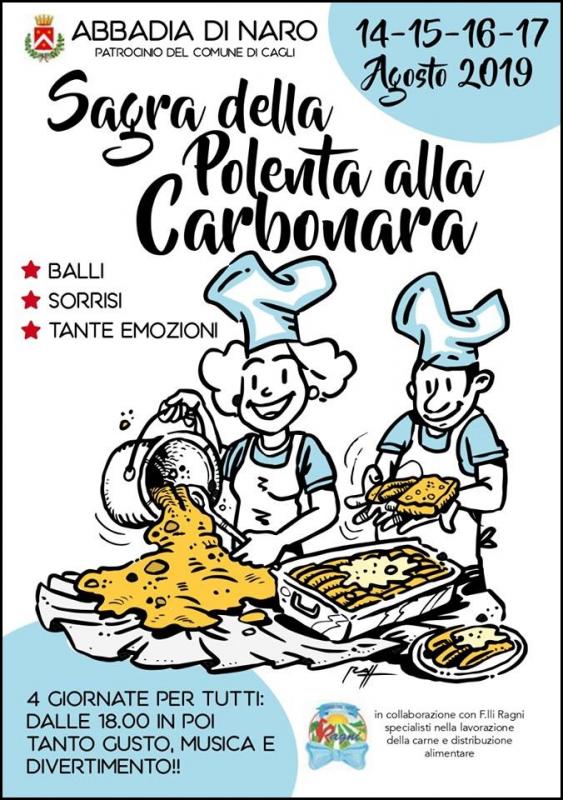 14-15-16-17 Agosto 2019 non perdetevi la Sagra della Polenta alla Carbonara a Abbadia di Naro di Cagli (PU) ...quattro giornate per tutti, tanto gusto musica e divertimento!