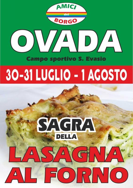 La Sagra della Lasagna al Forno a Ovada Località Borgo Presso Campo Sportivo Strada Sant'evasio, si svolgenei giorni 20, 31 Luglio e 1 agosto 2021