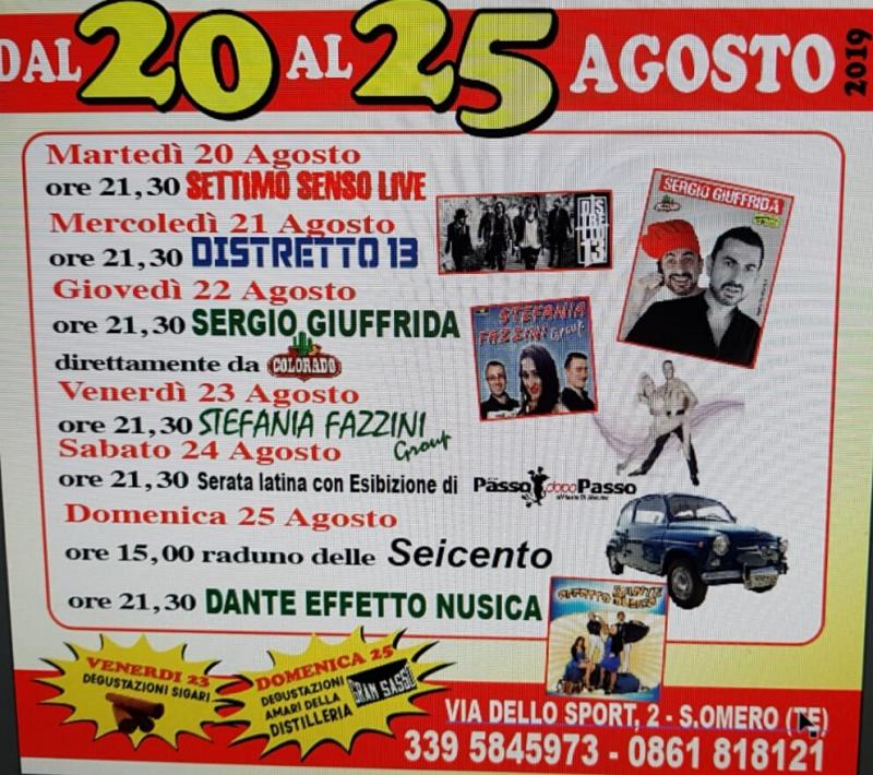 Da Martedì 20 a Domenica 25 Agosto 2019 - dalle ore 19:00 alle ore 23:00