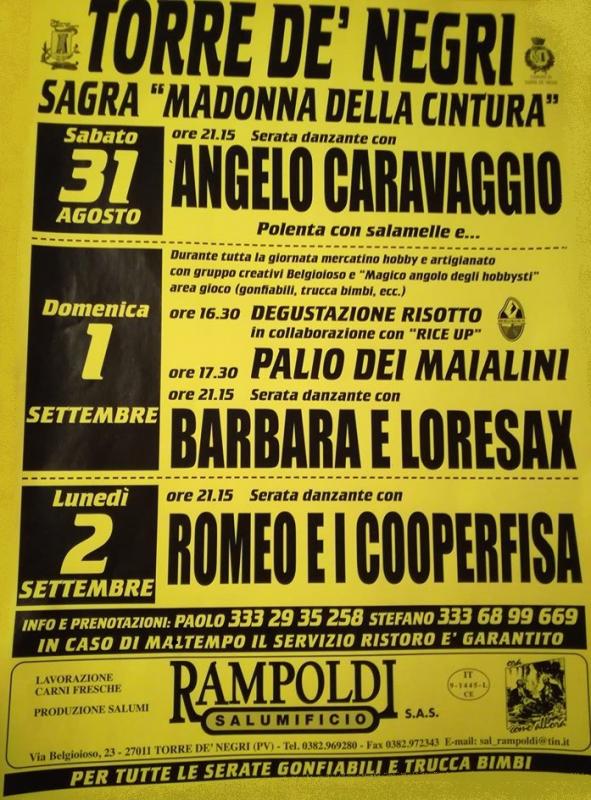 Stand gastronomico aperto sabato sera, domenica e lunedì pranzo e cena.
