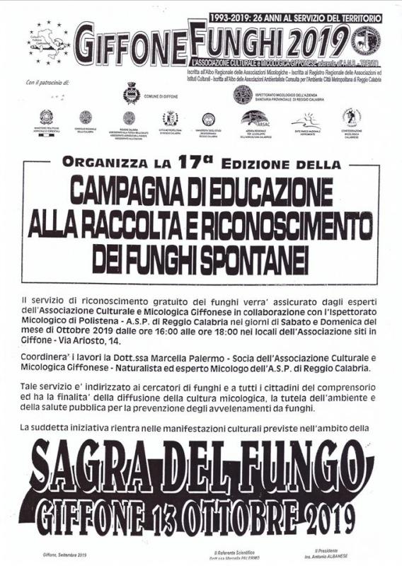 Sagra dei Funghi a Giffone si svolge il 13 ottobre 2019