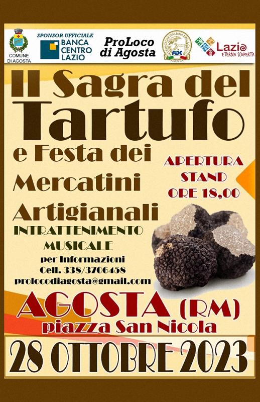 Torna ad Agosta (RM) in Piazza San Nicola la 2a edizione della Sagra del Tartufo e Festa dei Mercatini Artigianali! Appuntamento il 28 Ottobre, save the date!
