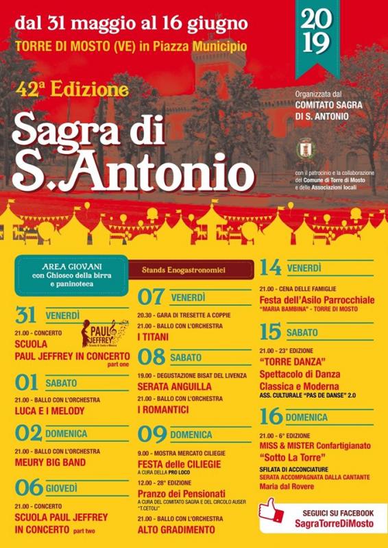 La Sagra di Sant'Antonio a Torre di Mosto si svolgera dal 29 Maggio al 14 Giugno 2020