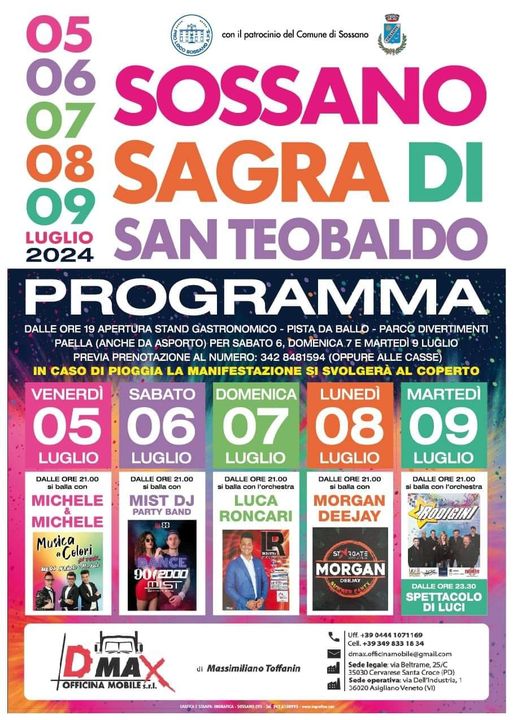 Sagra di San Teobaldo a Sossano dal 5 al 9Luglio 2024