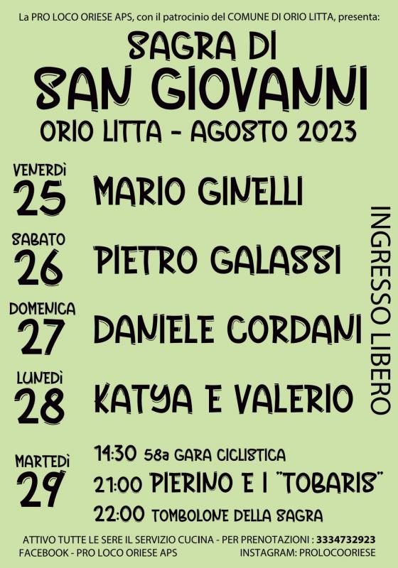 la Pro Loco Oriese vi invita a concludere in bellezza l'estate con giorni di festa in occasione della Sagra di San Giovanni