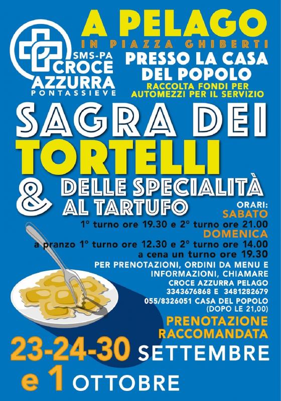 A Pelago in provincia di Firenze si svolge nei giorni 23-24- 30 Settembre e 1 Ottobre 2023 la Sagra dei Tortelli e delle Specialità al Tartufo.