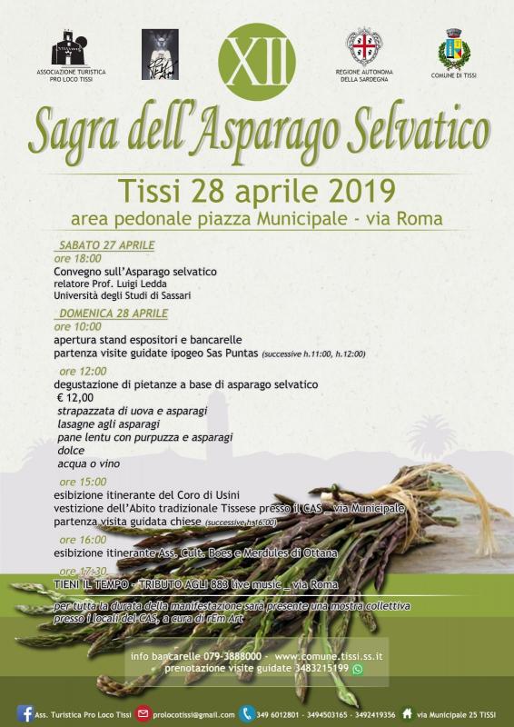 L'Amministrazione Comunale e l'Associazione Turistica Pro Loco di Tissi vi invitano alla XII Sagra dell'Asparago Selvatico nella giornata di Domenica 28 Aprile 2019.