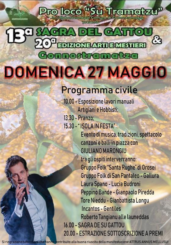 La proloco "Su tramatzu" e lieta di invitare tutti alla 13a Sagra de su Gattou Domenica 27 Maggio 2018.