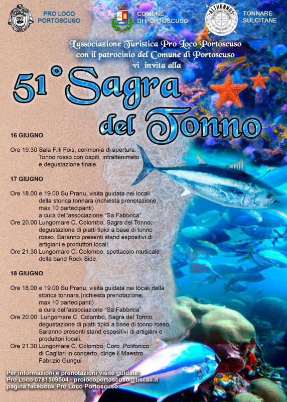 A Portoscuso in provincia di Carbonia-Iglesias si svolge nei giorni 16-17-18- Giugno 2023 la 51a edizione della Sagra del Tonno e del Pescato.