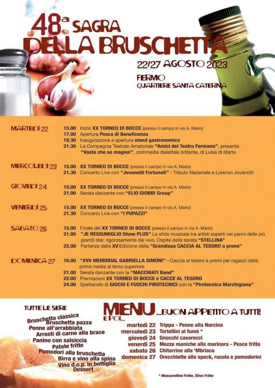 A Fermo si svolge nei giorni dadl 22 al 27 Agosto 2022 la 48a edizione della Sagra della Bruschetta.