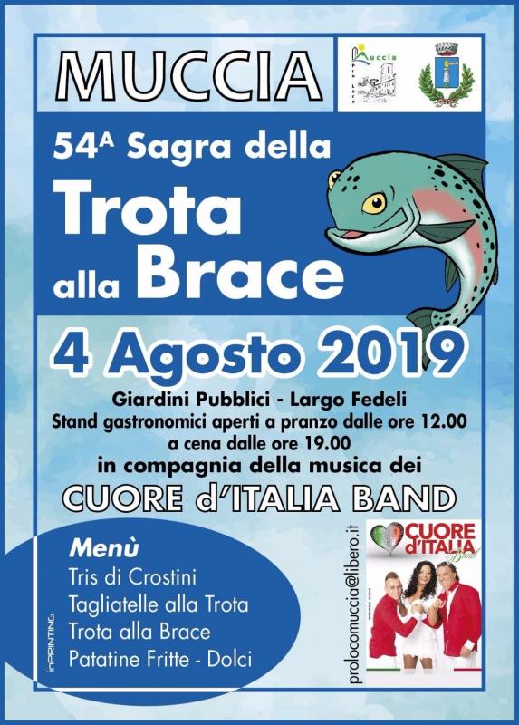 A Muccia in provincia di Macerata si svolge nella giornata di Domenica 04 Agosto 2019 la 54a edizione della Sagra della Trota alla Brace.
