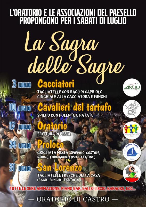 A Castro in provincia di Bergamo si svolge nei giorni 03, 10, 17, 24, 31 Luglio 2021 la Sagra delle Sagre.